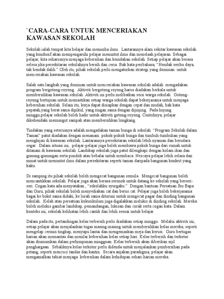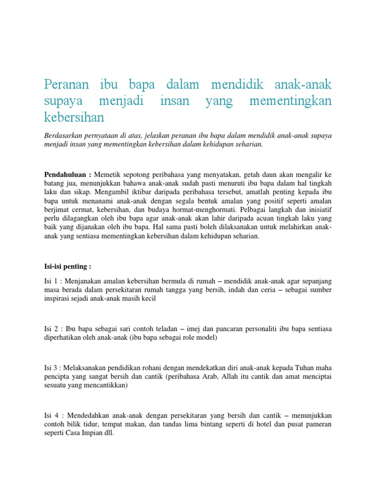 Karangan Spm Peranan Ibu Bapa Mementingkan Kebersihan Pdf
